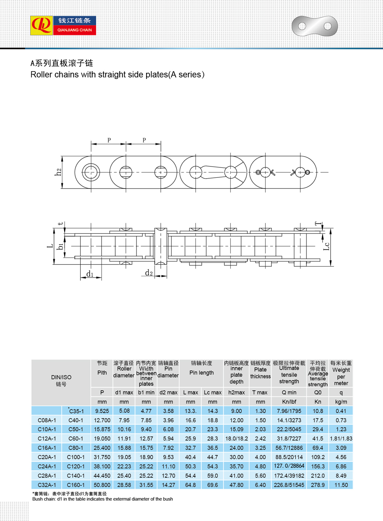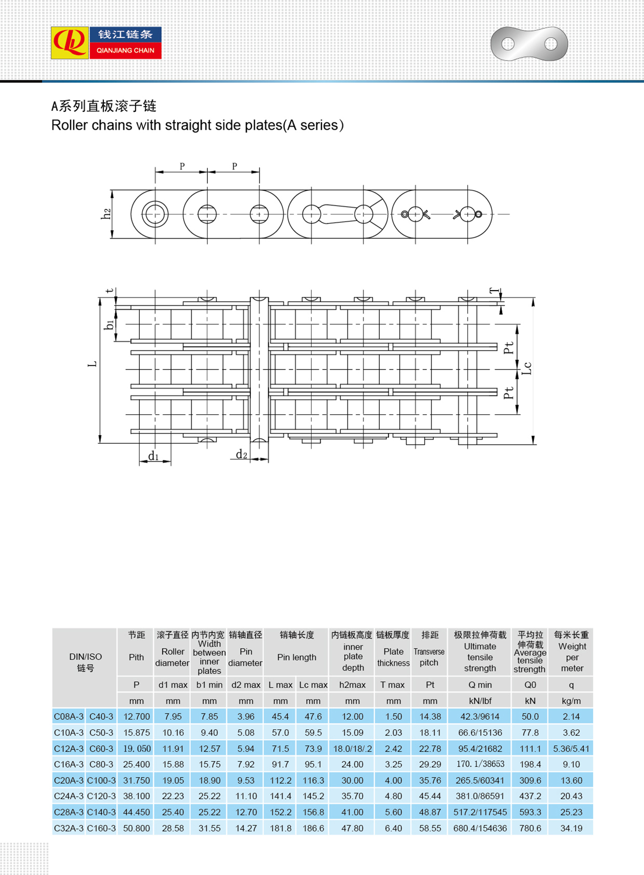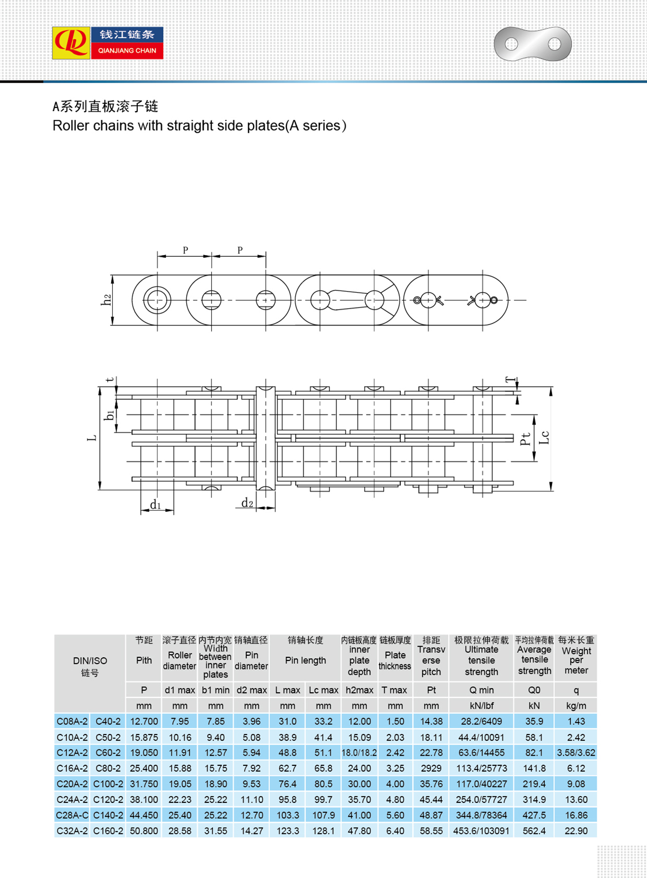 직선형 측면 플레이트가 있는 롤러 체인(A 시리즈)