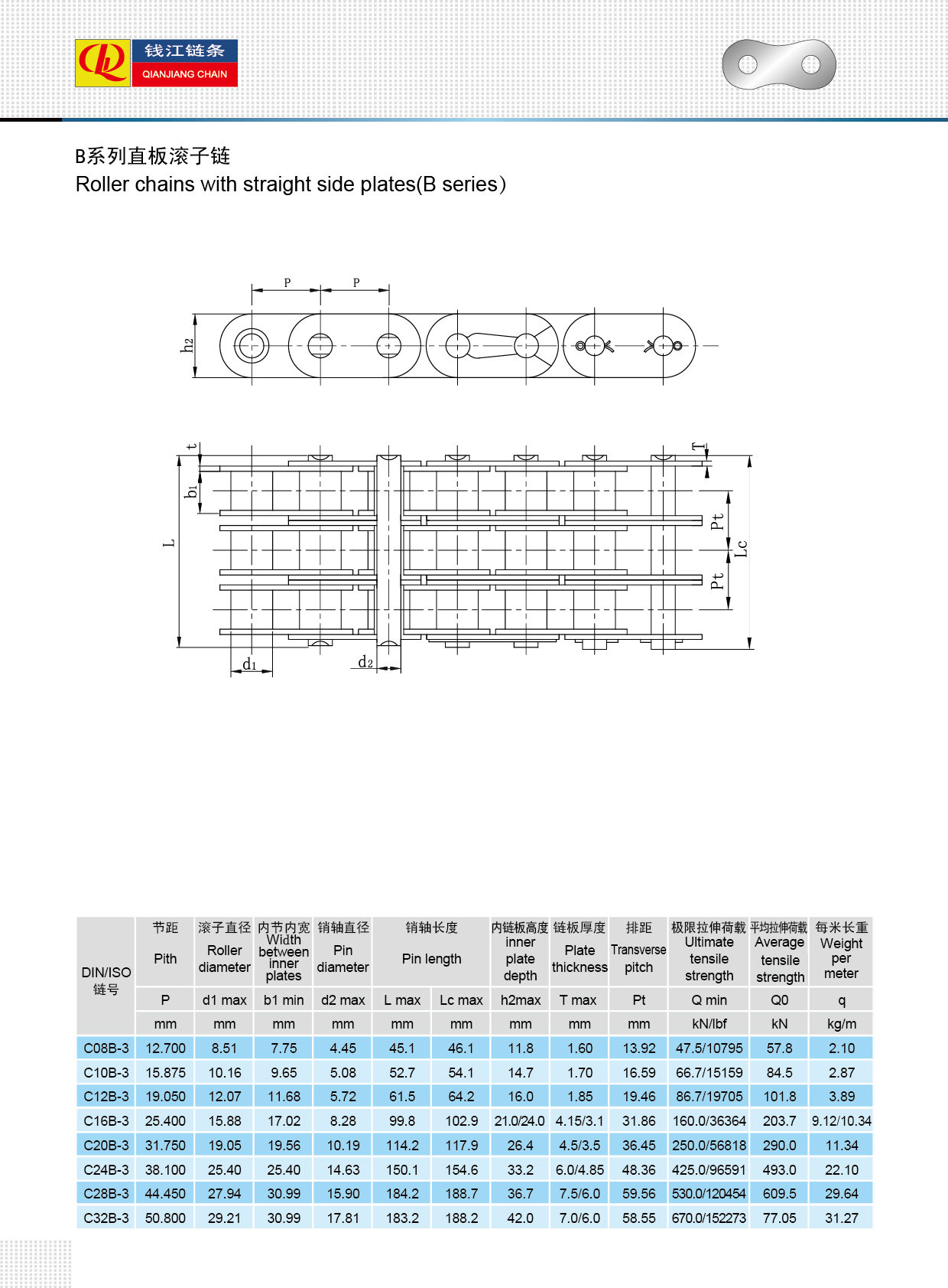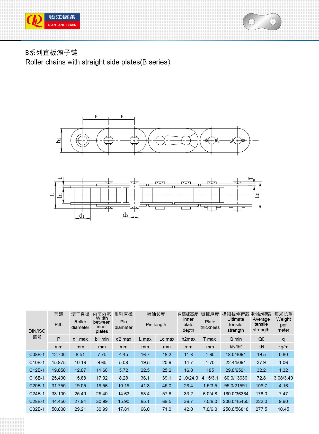 직선형 측면 플레이트가 있는 롤러 체인(B 시리즈)