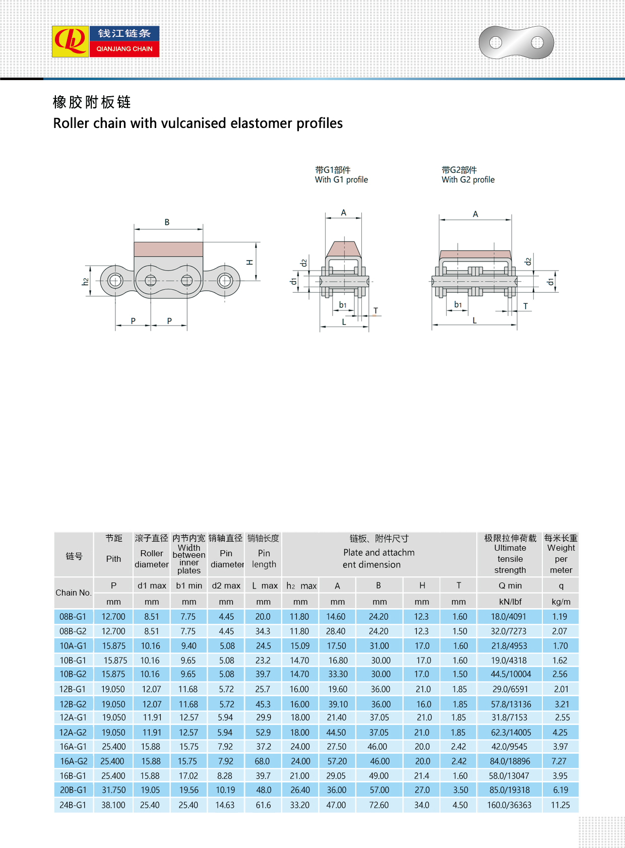가황 엘라스토머 프로파일이 포함된 롤러 체인