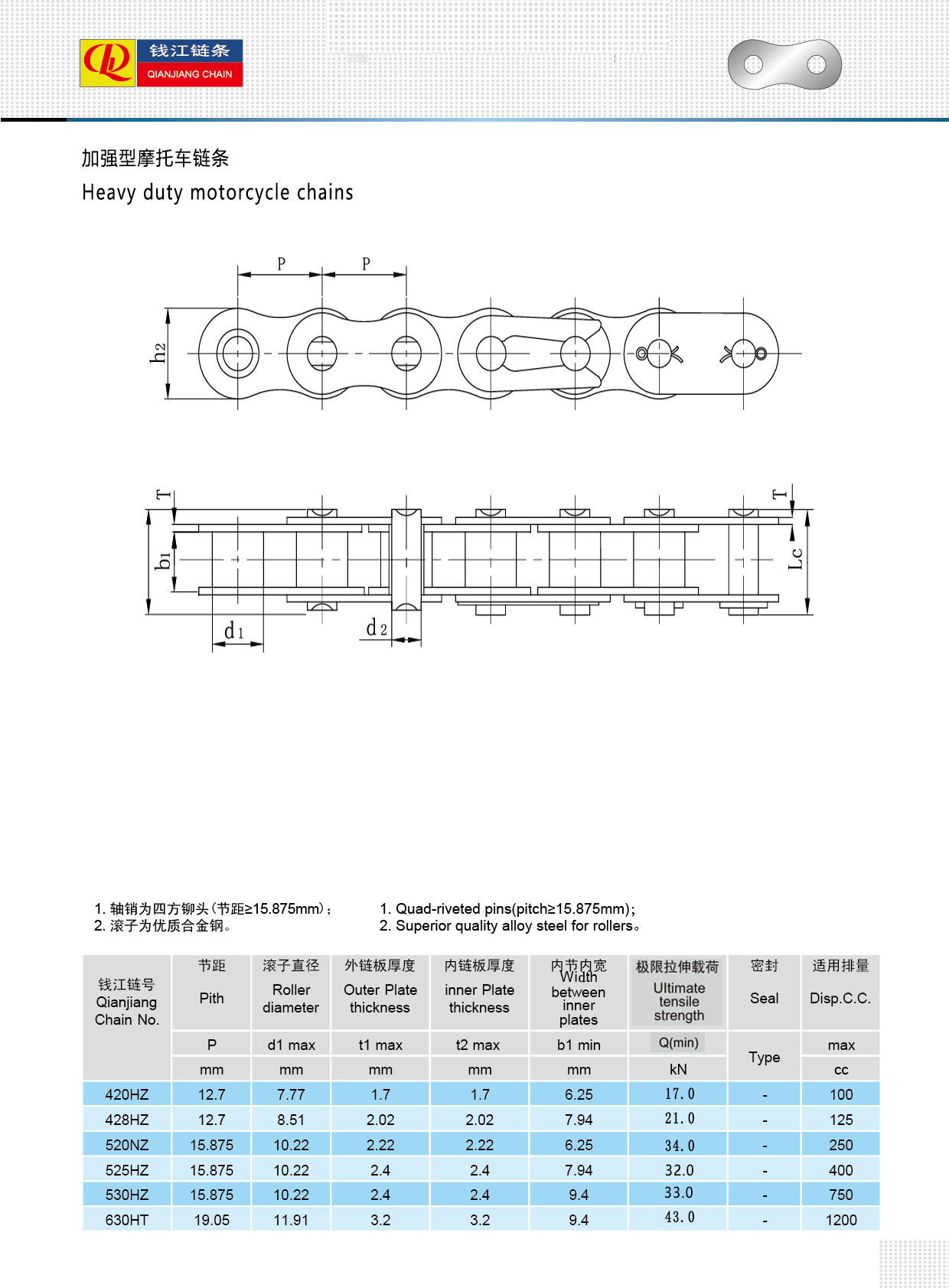 고품질 합금강 강력하고 튼튼한 오토바이 체인 - 타의 추종을 불허하는 성능과 신뢰성을 위해 설계되었습니다. 프리미엄 합금강으로 제작된 이 체인은 조건을 견딜 수 있도록 제작되어 강도, 내마모성 및 오래 지속되는 내구성을 제공합니다.