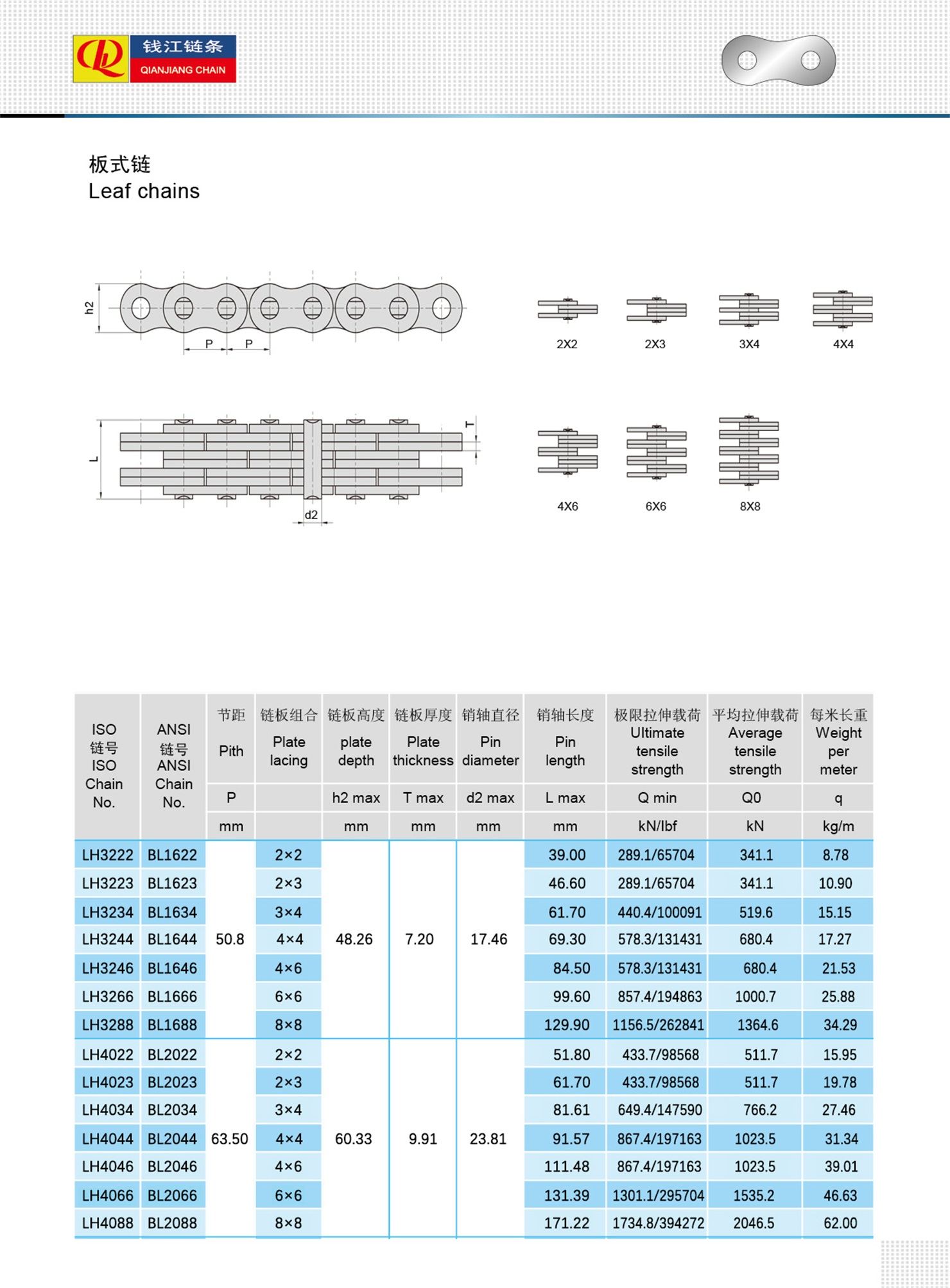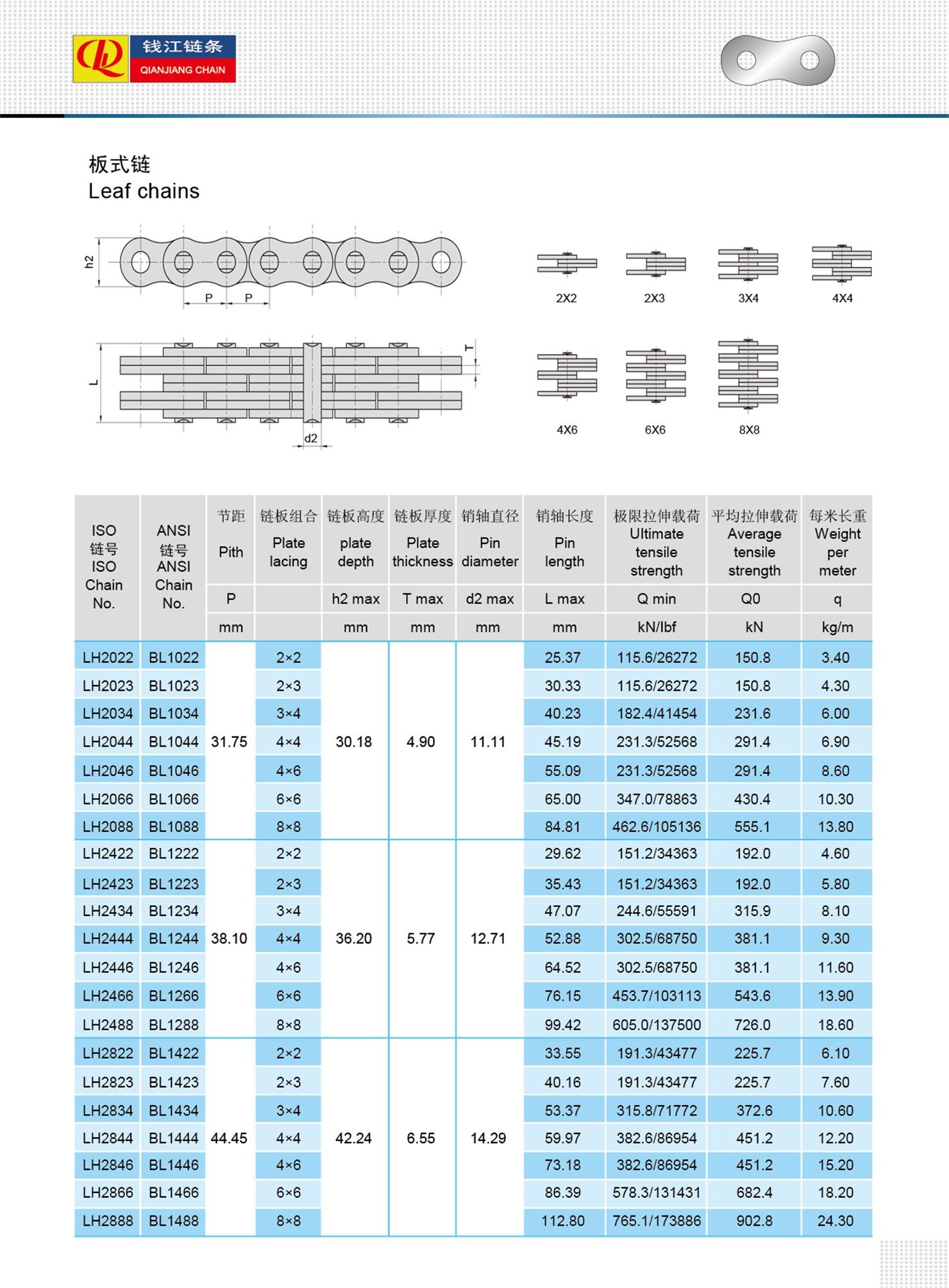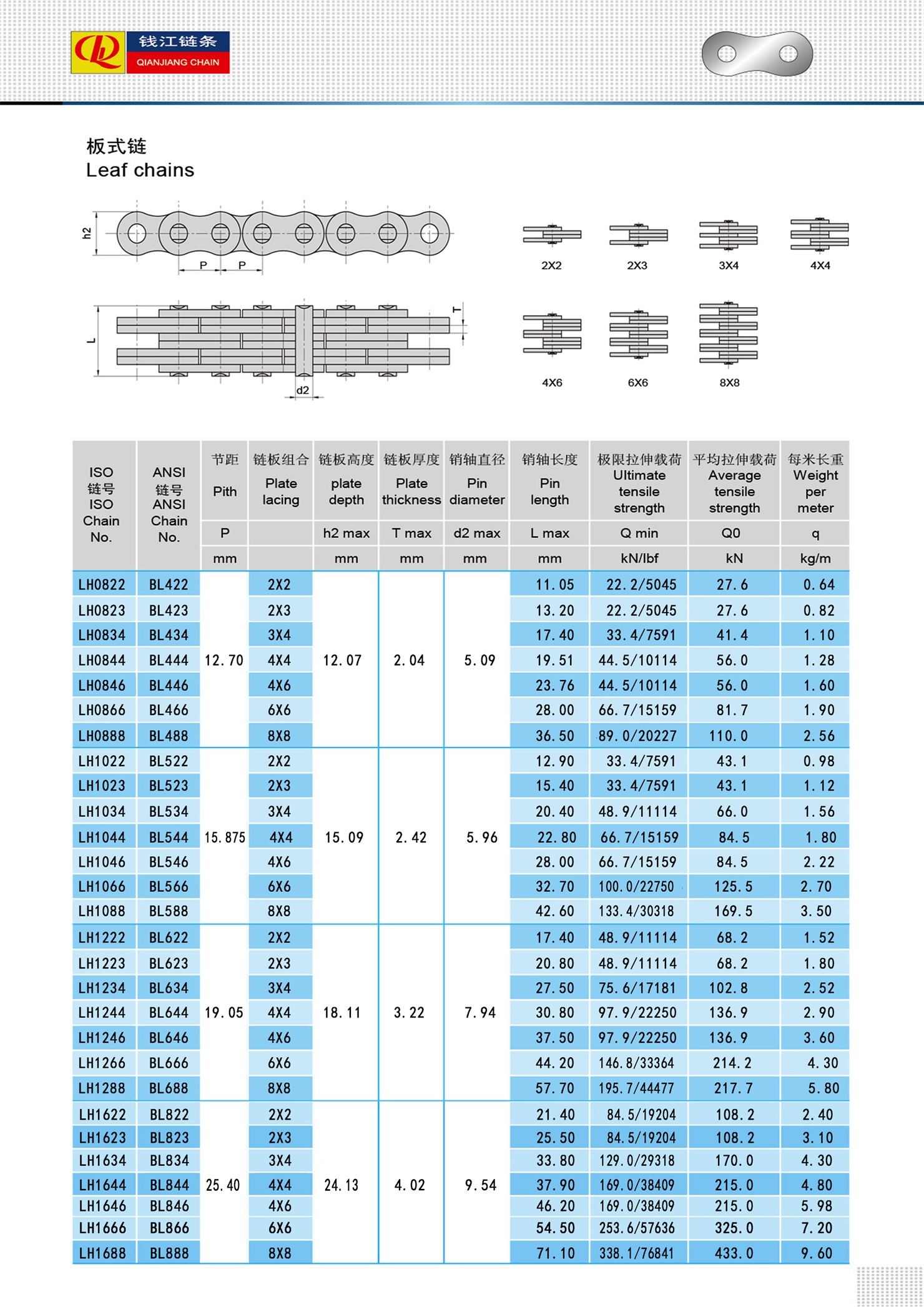 LH(BL 시리즈) 내마모성 내구성 리프 체인
