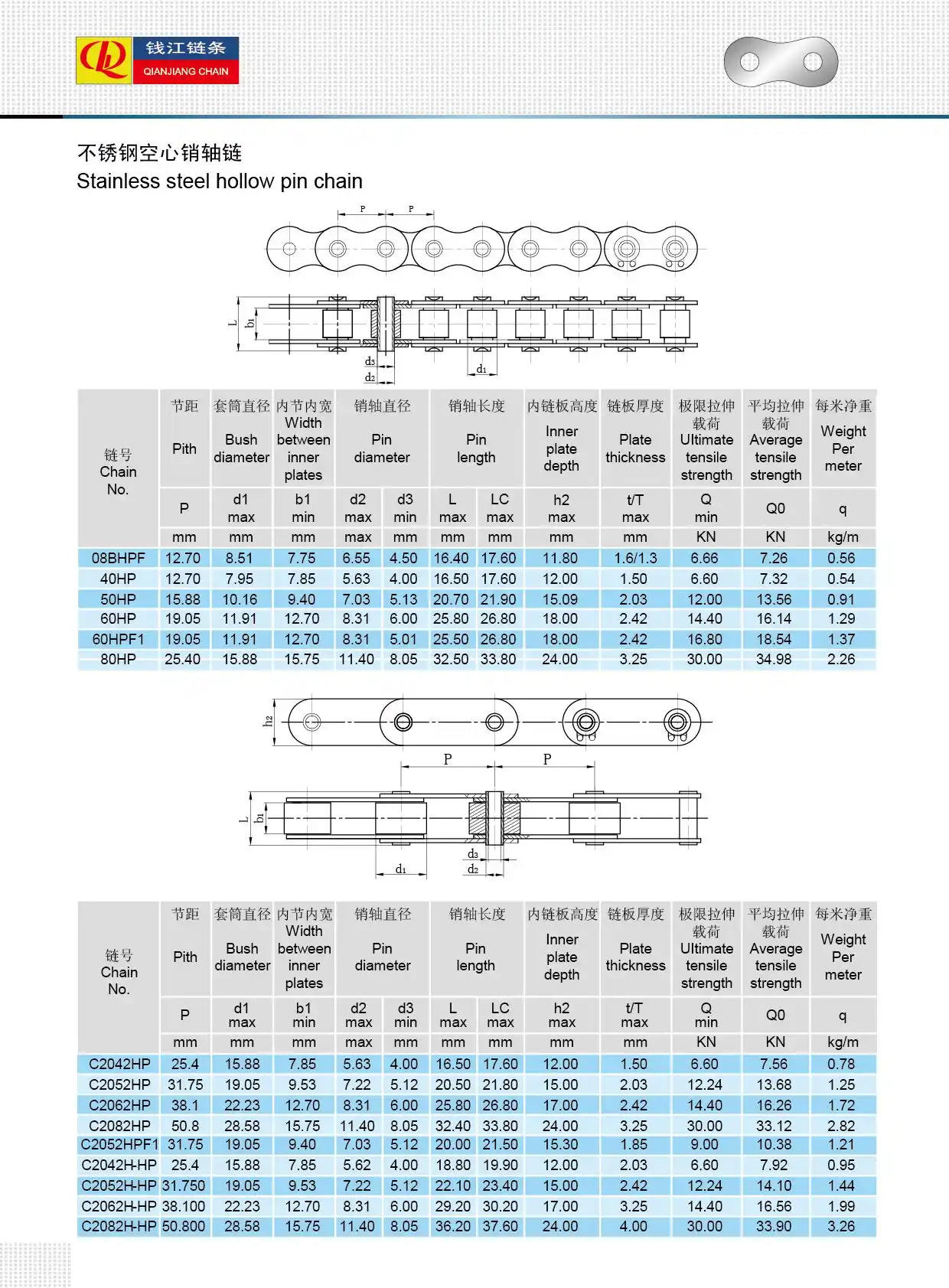 적용 관점에서 볼 때, 스테인리스 스틸 중공 핀 체인은 식품 가공, 포장, 자동차 제조 등과 같은 다양한 산업 분야에서 탁월한 성능을 발휘합니다. 이는 섬세한 제품을 운반하거나, 특정 작업을 위한 부착물을 수용하거나, 높은 스트레스 조건에서 안정적으로 작동하는 데 사용됩니다. 귀하의 산업 요구 사항을 충족하는 더 스마트하고 안정적인 방법을 위해 스테인레스 스틸 중공 핀 체인을 선택하십시오!